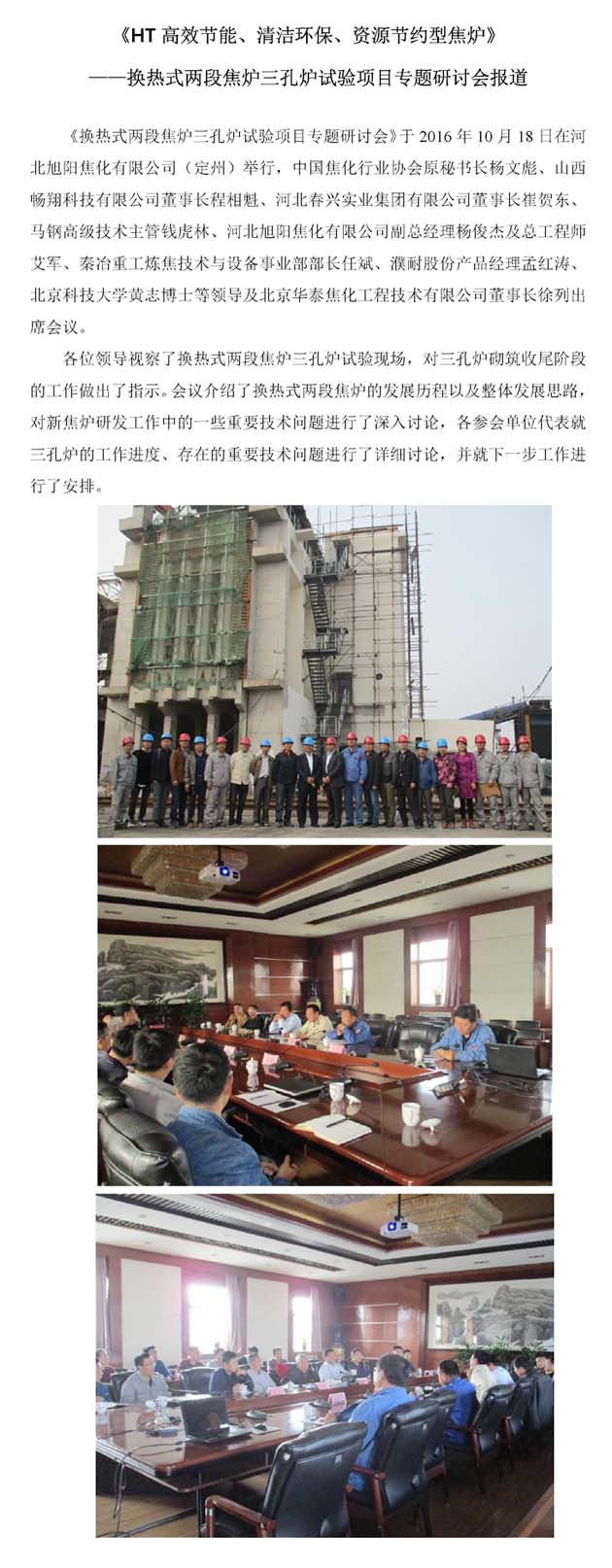 换热式两段焦炉三孔炉试验项目专题研讨会报道