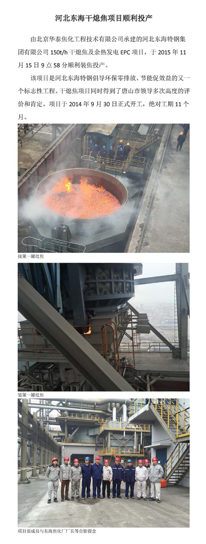 河北东海干熄焦项目顺利投产