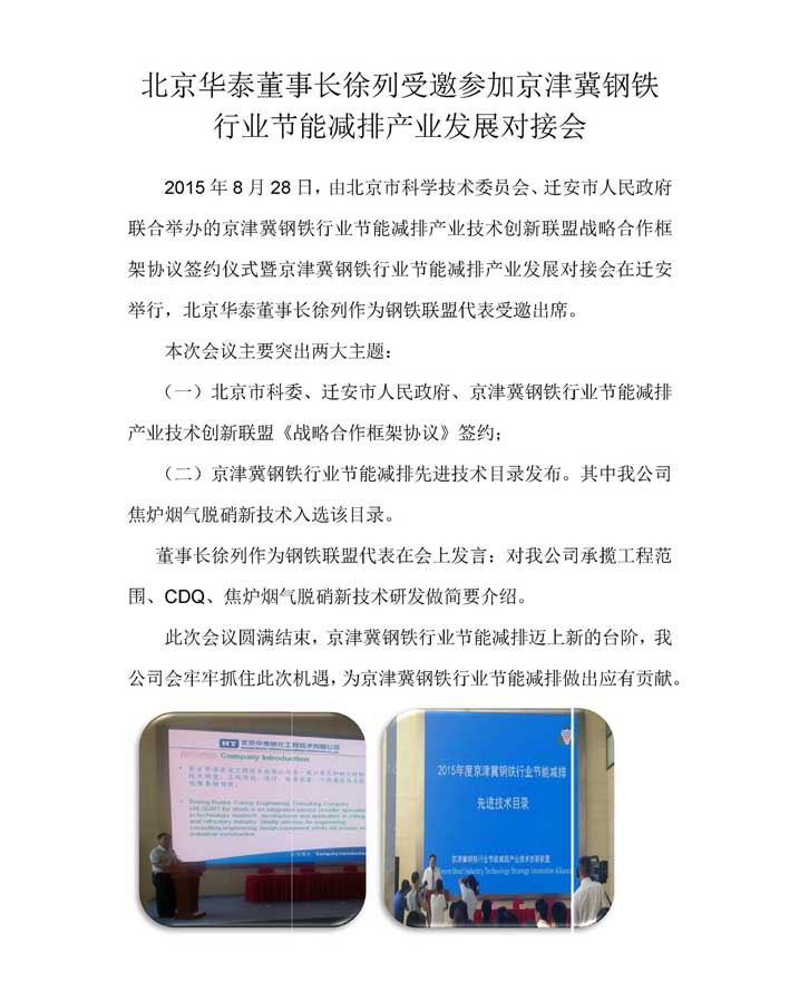 北京华泰董事长徐列受邀参加京津冀钢铁行业节能减排产业发展对接会
