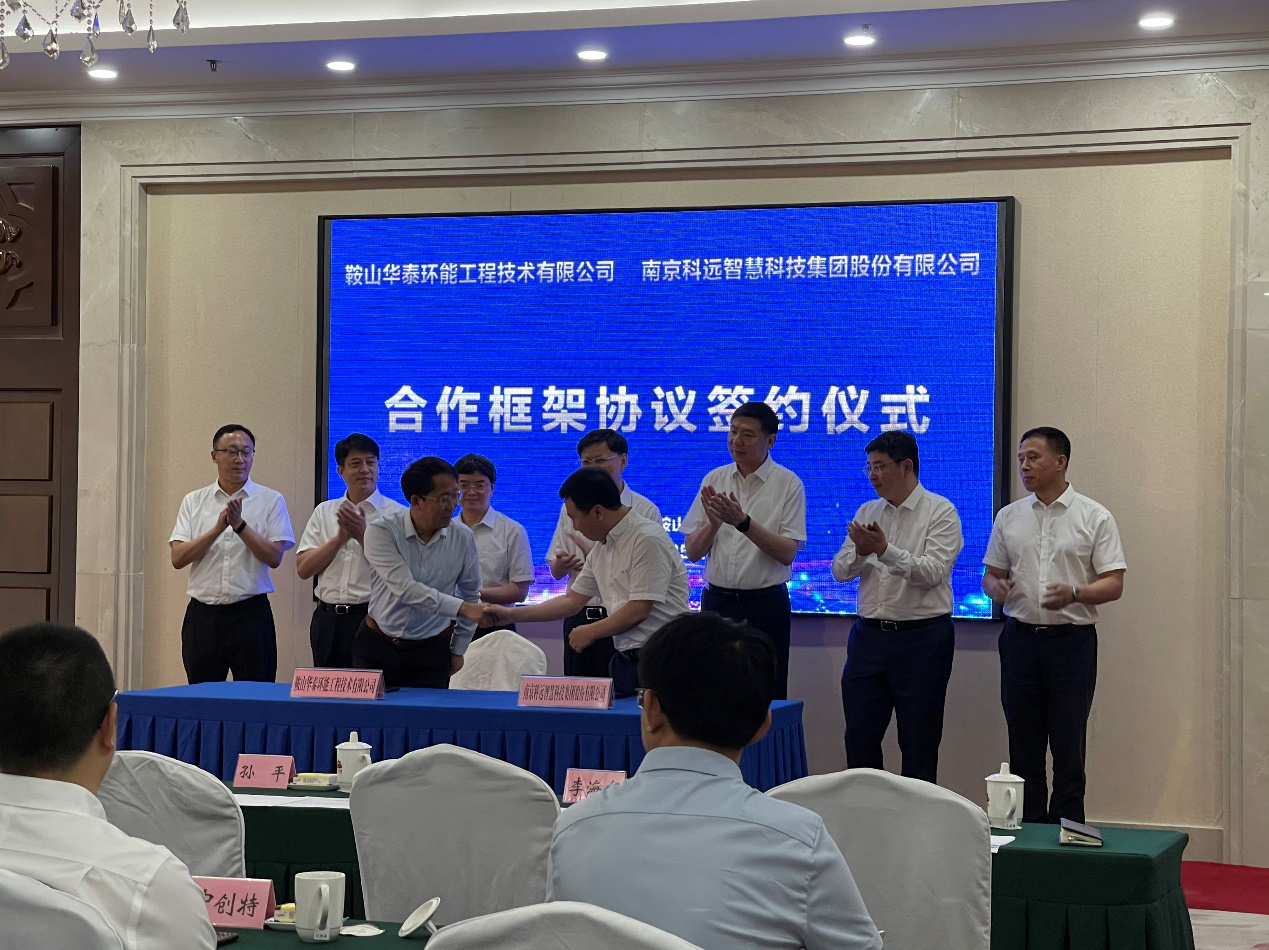 6月25日,公司总经理韩冬出席鞍山市工业和信息化局主办的“鞍山市产业数字化转型对接交流会”集中签约仪式。期间,公司总经理韩冬及南京科远智慧科技集团股份有限公司科远智慧总经理赵永均分别代表双方签订了“干熄焦远程智能运维云平台合作框架协议”。鞍山市委书记余功斌、代理市长王忠昆、副市长孙平、政府秘书长金峰、政府副秘书长苏晓峰、市工业和信息化局、市科技局等相关人员见证了此次签约仪式。