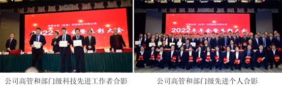 随后,公司领导宣读了表彰决定,并分别为部门级科技先进工作者、部门级先进个人、公司级科技先进工作者、公司级质量先进个人、公司级先进个人、科技先进管理者、先进中层及项目经理、抗疫先进工作者、先进科技团队、先进集体进行了颁奖。在过去的一年里,他们经历过成功的喜悦,也经历过失败的沮丧,成功带来信念,失败带来认知,有信念有认知才会有更稳固的发展,手捧这份荣誉,所有华泰人都为之骄傲,为之自豪。先进个人代表霍海雯女士,先进项目经理代表杜玉奎先生,先进集体代表陈本成先生以及抗疫先进工作者代表孙兴盛先生相继发表感言,回顾过去,我们成绩斐然,展望未来,我们机遇在握,重任在肩,在新的一年里,我们要审时度势,携手共进,锐意进取,攻坚克难,为实现2023年度各项目标任务而努力奋斗!
