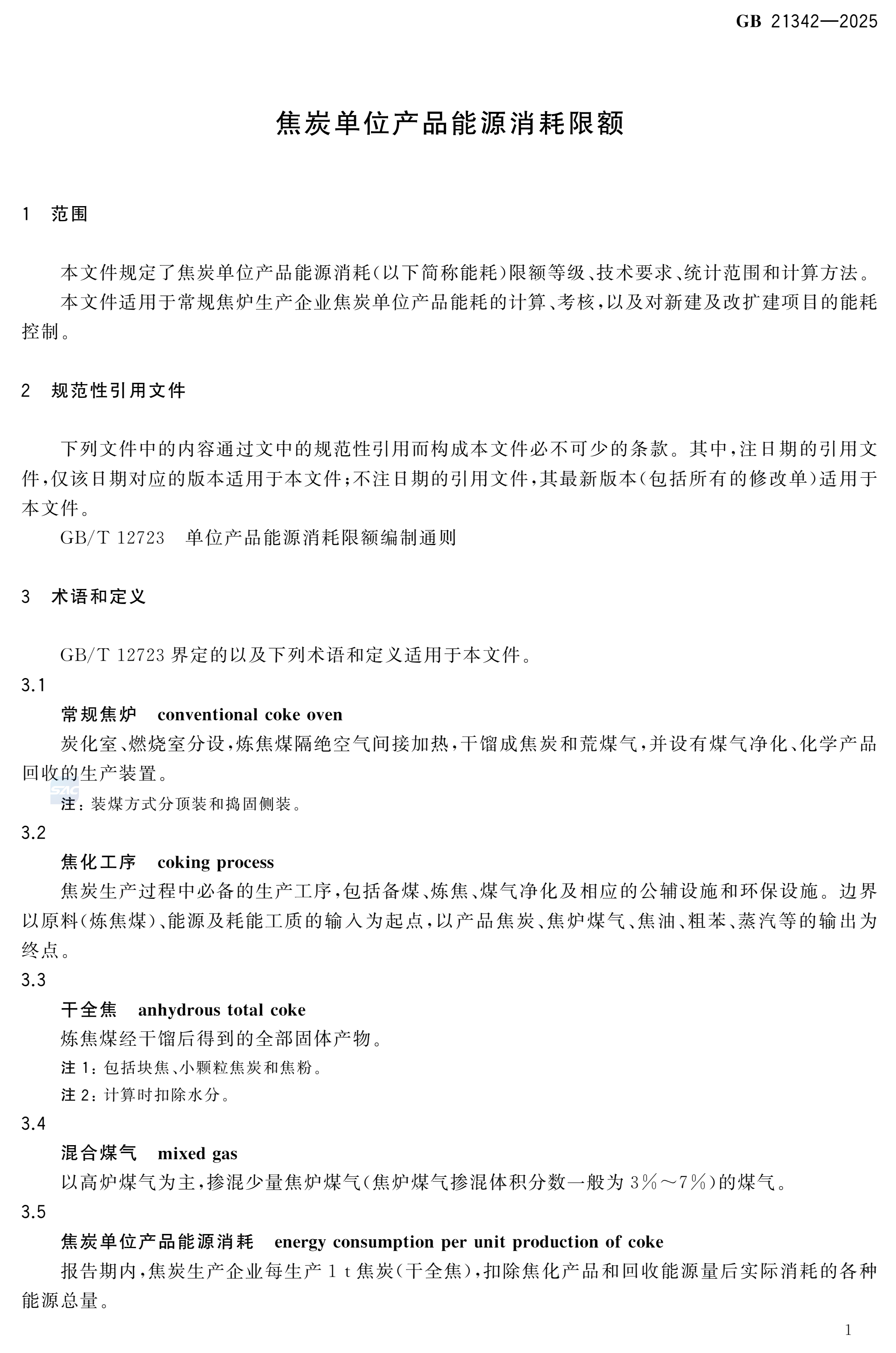 GB21342-2025 焦炭单位产品能源消耗限额